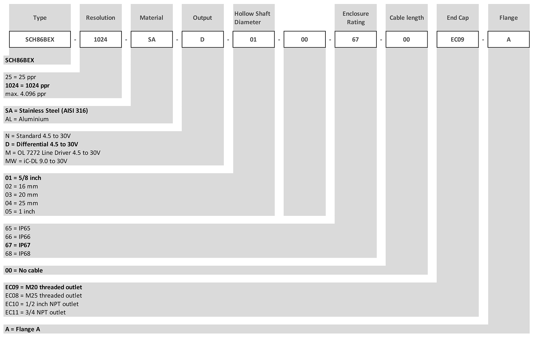 Bestellschlüssel "Drehgeber - Inkremental SCH86BEX mit Kabel"